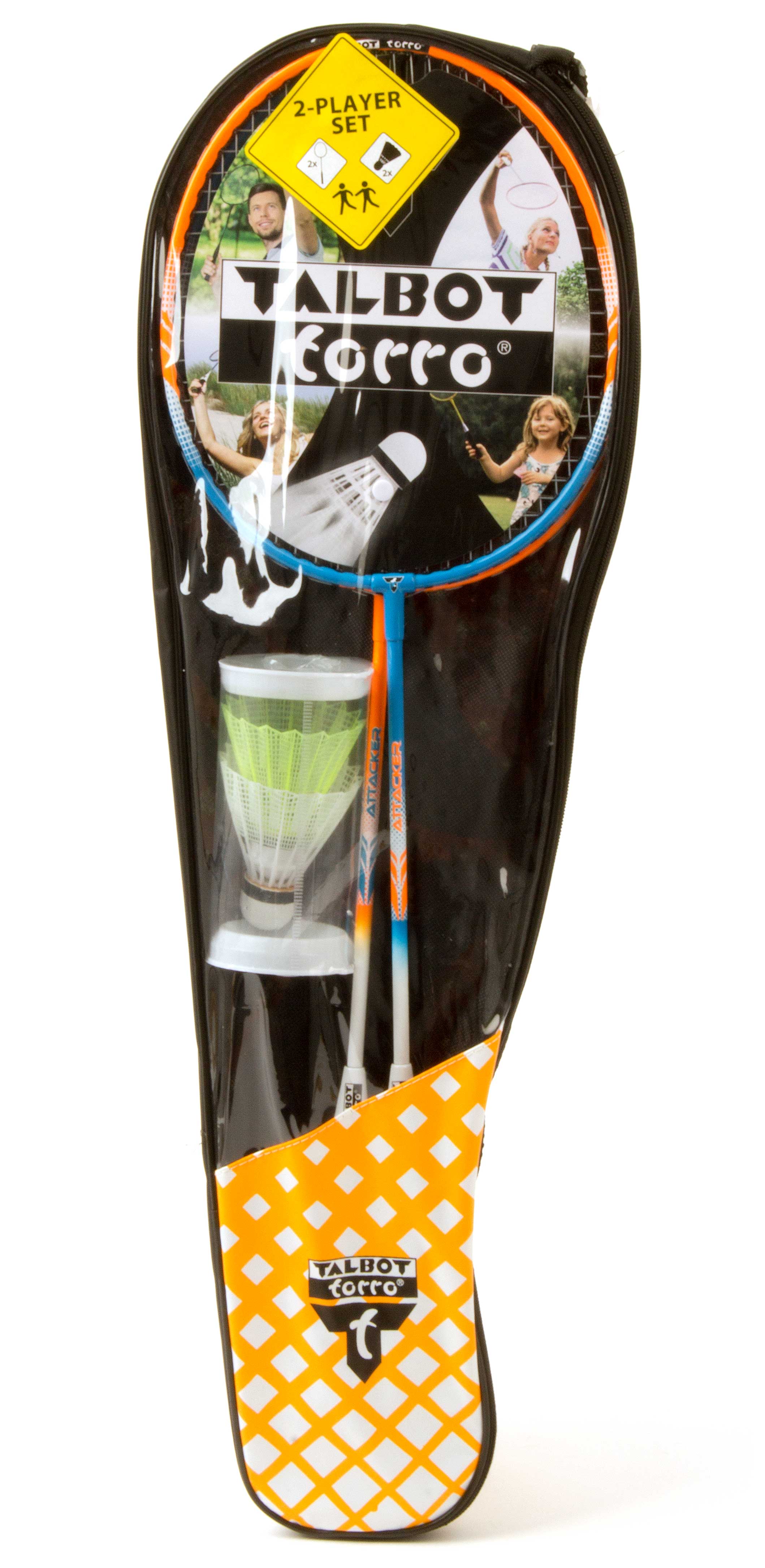 Badminton-Set bestehend aus zwei Mini-Badmintonschlägern und zwei Federbällen in einer Hülle mit Federball-Etui. Schläger aus Aluminium-Rahmen.